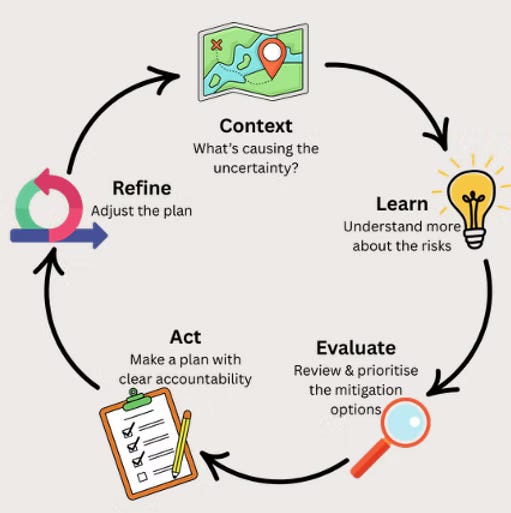 The other missing part of the traditional frameworks around uncertainty, is a mechanism for continuous improvement. The pace of change in the modern world is relentless so a framework has to allow for refinement and adjusting as things evolve; adapting as new insights emerge and circumstances shift.